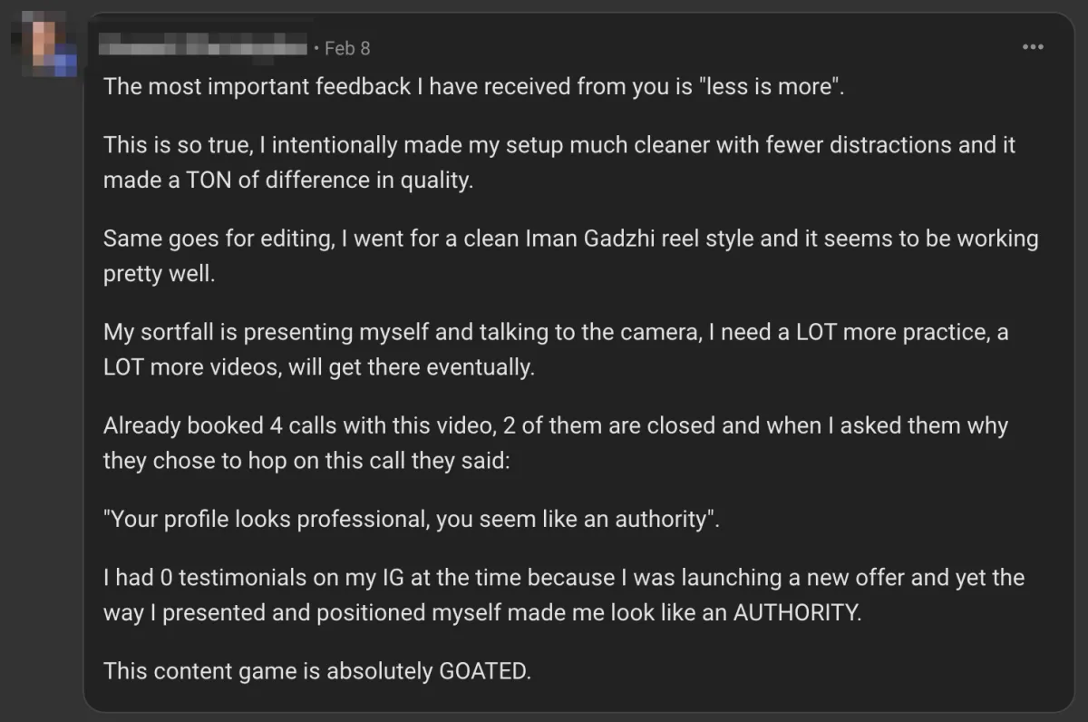 There are. You'll get the Content to Client System breakdown and a recent discovery that allowed me to generate 20+ leads/day.